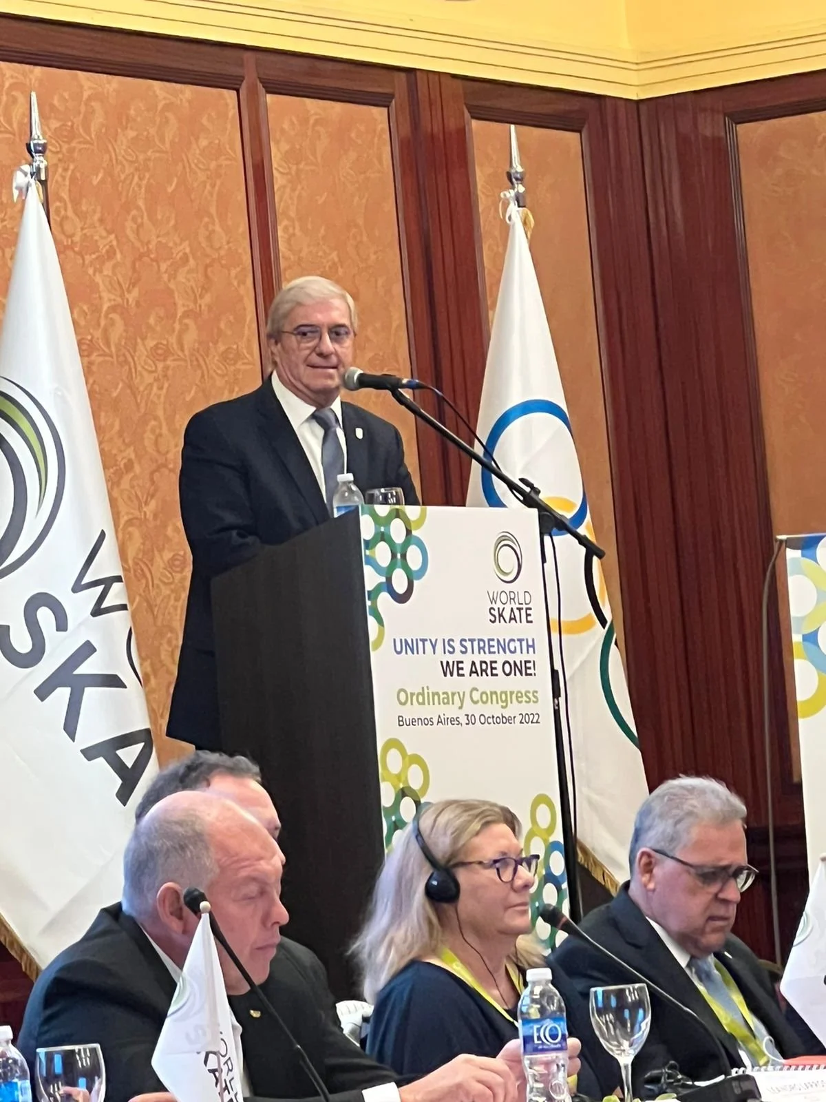 El evento, que se realizó por primera vez en Argentina, congregó a los máximos dirigentes de la entidad internacional del patinaje. Liderado por el presidente de World Skate, Sabatino Aracu, también contó con la presencia del presidente del Comité Olímpico Argentino, Mario Moccia.