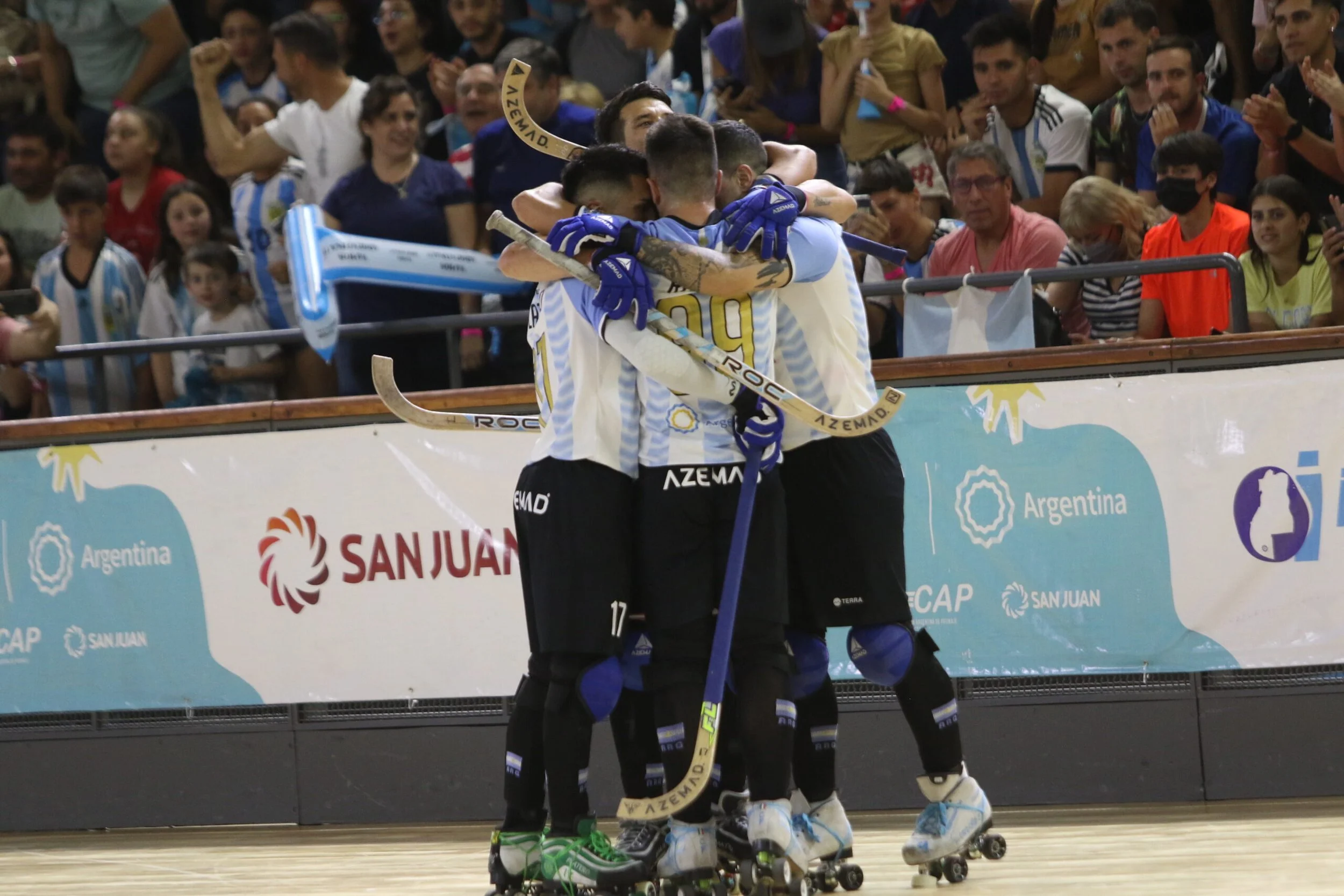 Nuevamente el Aldo Cantoni lució con lleno total. En la segunda jornada del Mundial Senior masculino de Hockey sobre Patines, se enfrentaban en San Juan Angola y Argentina, en el último partido de esta jornada correspondiente al grupo B, con triunfo argentino por 4 a 0.