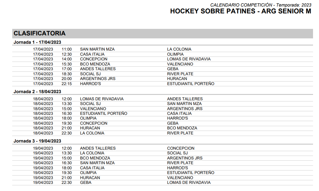 Fixture del Argentino Masculino Senior de hockey sobre patines