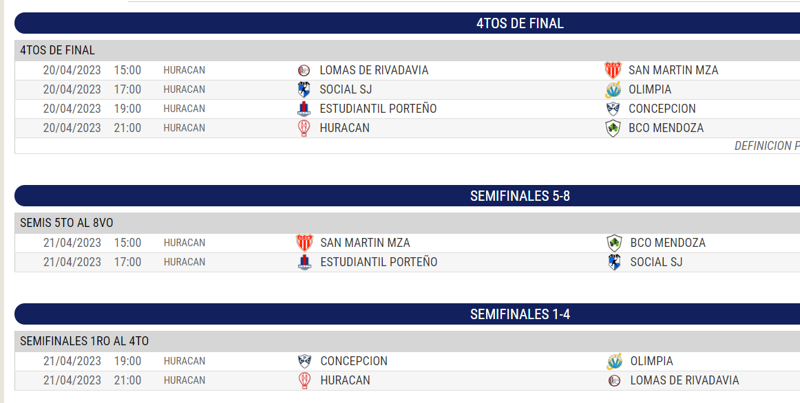 Entonces, en busca de la gran final, este viernes se enfrentarán Concepción y Olimpia y, en la otra llave, Huracán y Lomas de Rivadavia.