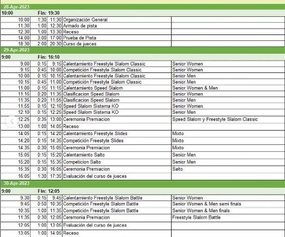 Días y horarios del Campeonato Argentino de Inline Freestyle